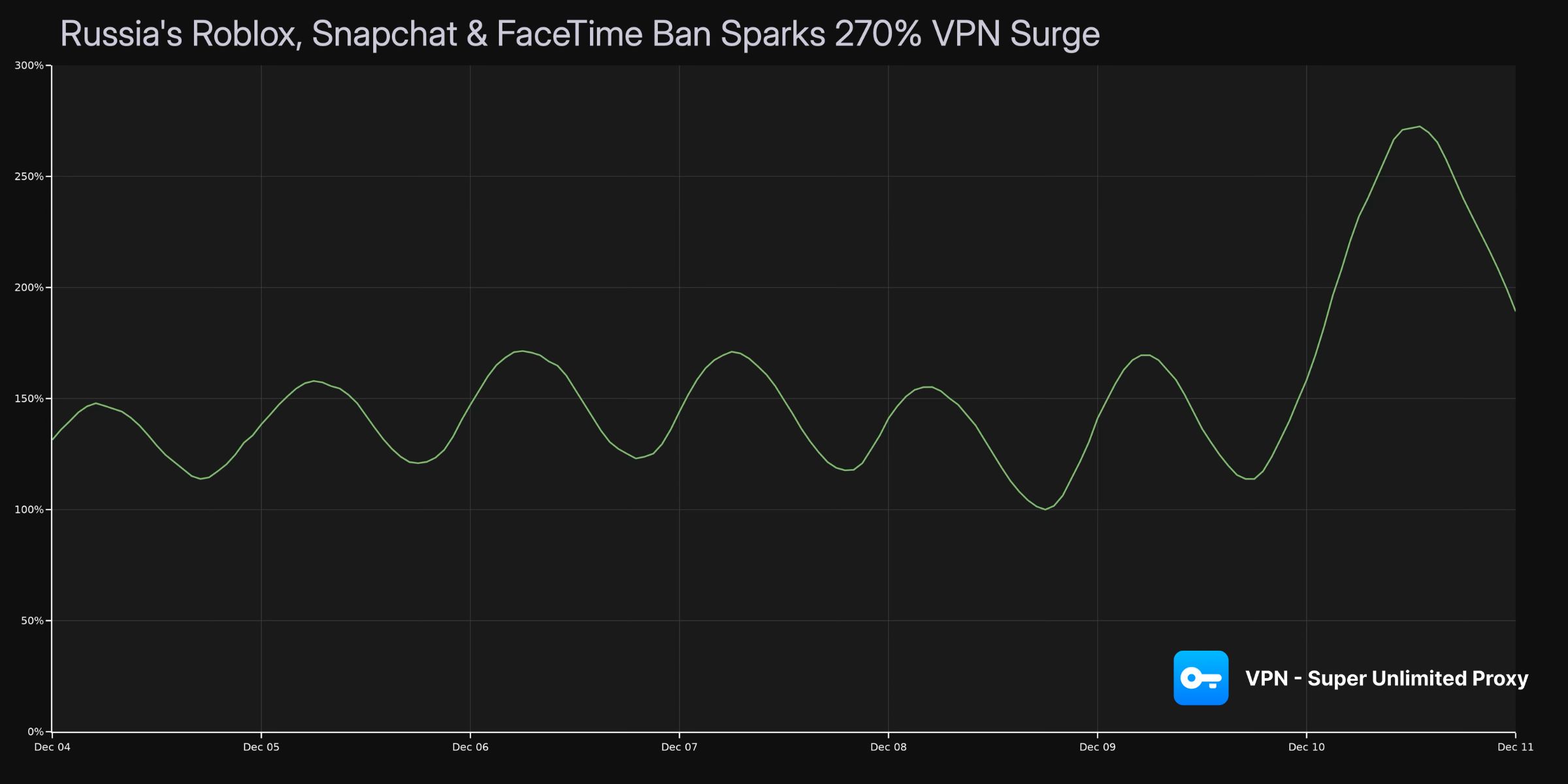 Russia blocked Roblox, Snapchat, and FaceTime, cutting off 18 million users. VPN connections surged 270% as users sought workarounds. Similar restrictions could happen again. Anywhere, anytime.